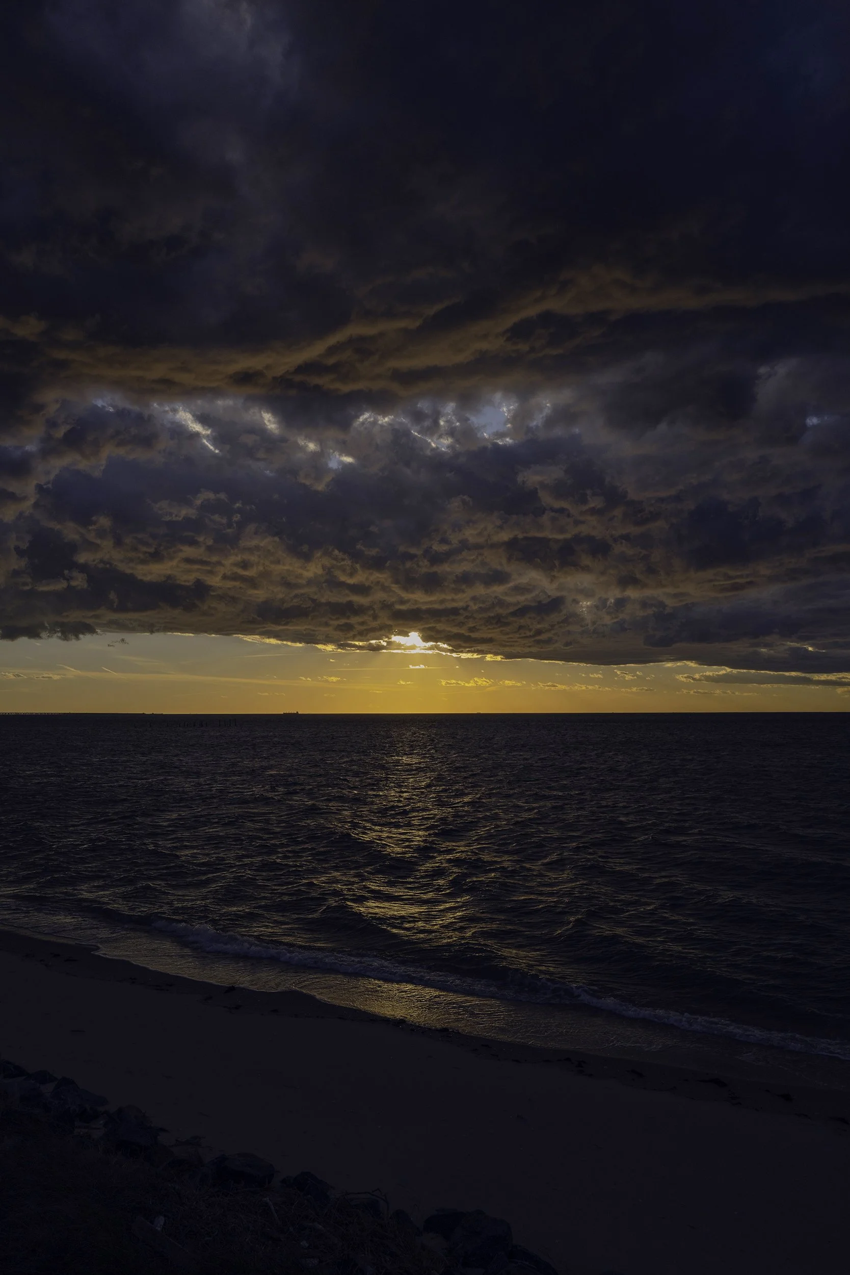 Late - just before the sun sets. Just before I ride back over the Bay Bridge home from the Eastern Shore the elements all get together for a benediction. The sun, the clouds, the waves of water - all singing this last song to send us on our way.