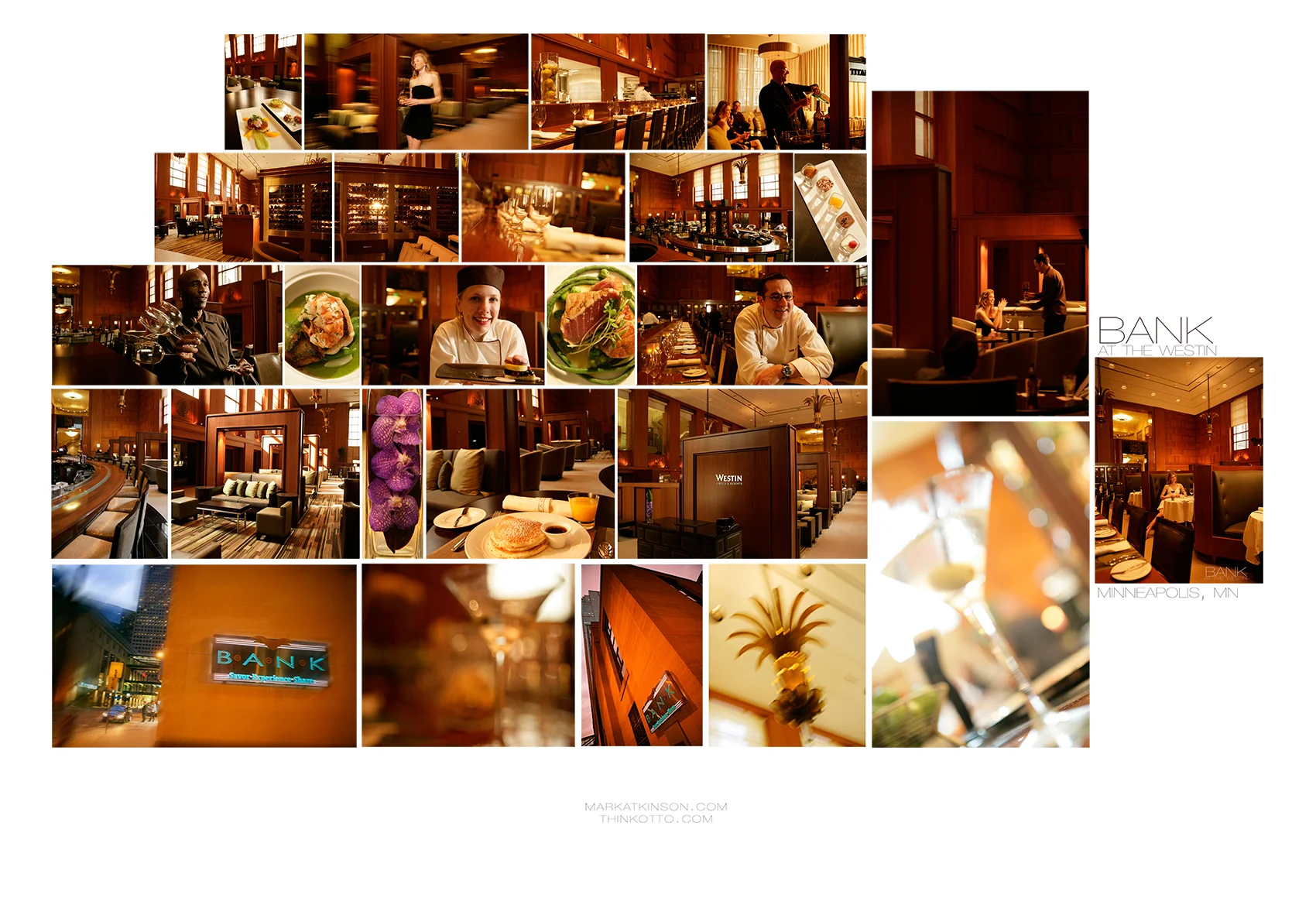 Hotel and resort photography (above, the BANK at the WESTIN, Minneapolis)